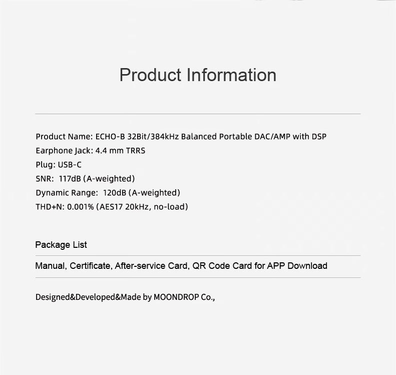 ECHO - B Portable USB - DAC Amplifier with High - Resolution, 4.4mm Balanced USB - C Interface